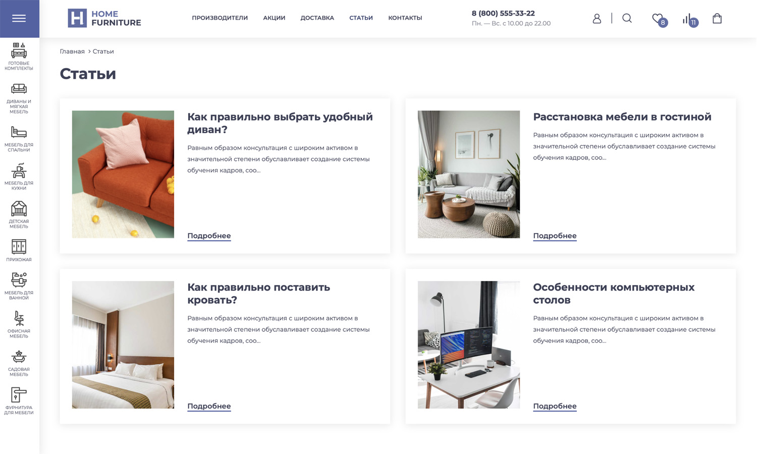 благодаря разделу «Статьи». Разместите полезные советы для клиентов и предложите