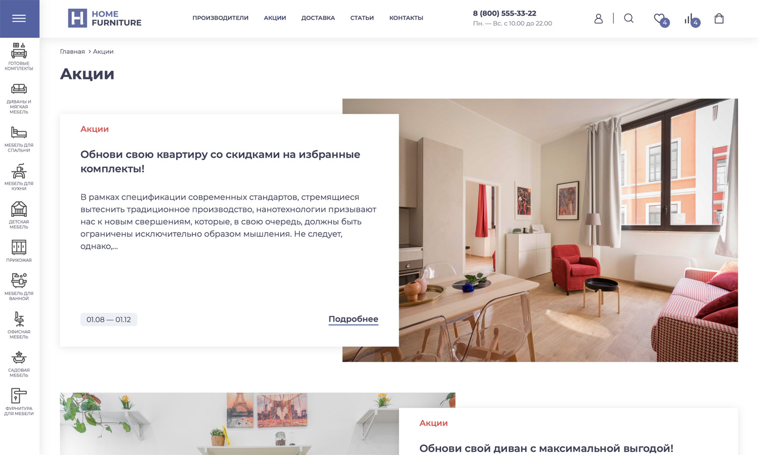 в отраслевом решении «Крайт: Мебель.Furniture» реализован незаменимый раздел со списком акций.