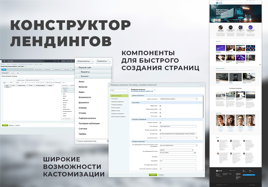- Конструктор для лендингов: Быстро и легко создавайте захватывающие лендинги с нашим удобным конструктором. Вам больше не нужны знания программирования, чтобы создать страницы с превосходным контентом и высокой конверсией.