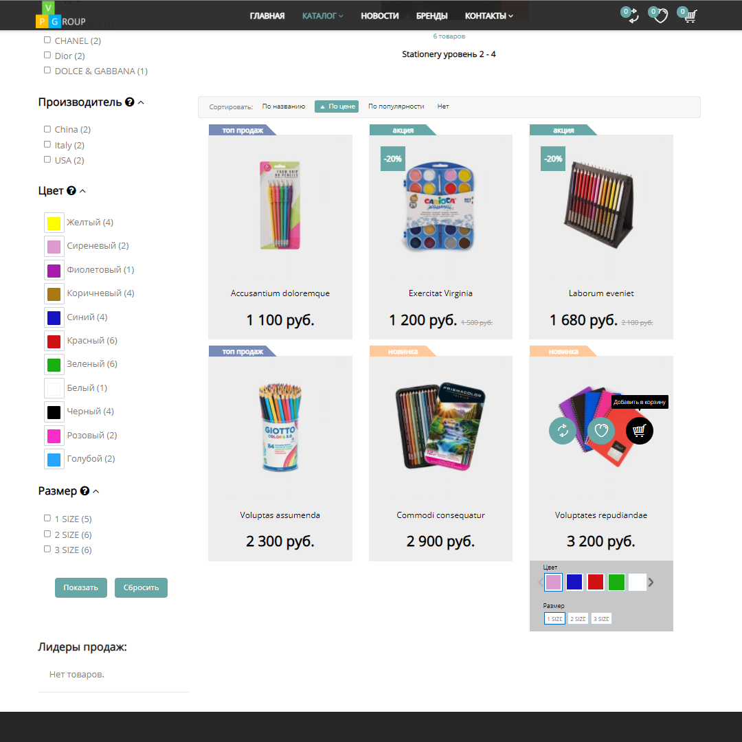 В интернет-магазинах от Pvgroup каталог товаров