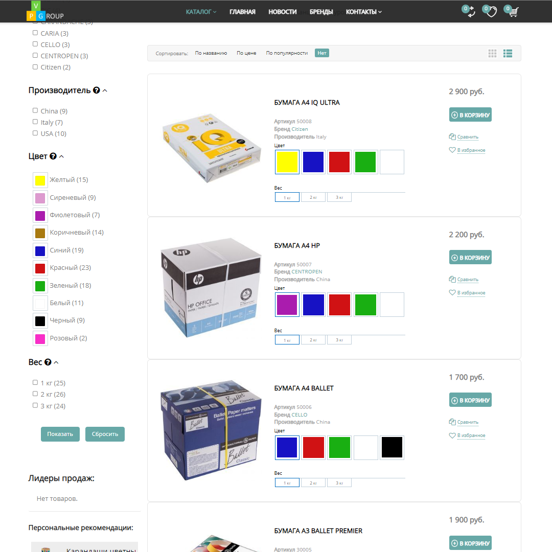 Pvgroup.Office - в эту группу входят интернет-магазины, которые специализируются на продаже канцтоваров, а также для владельцев книжных магазинов.