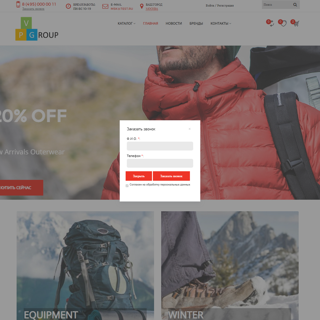 - Функцию "Заказать звонок".
