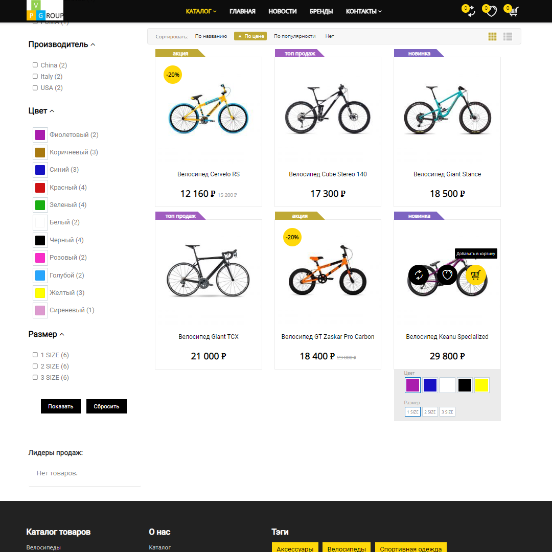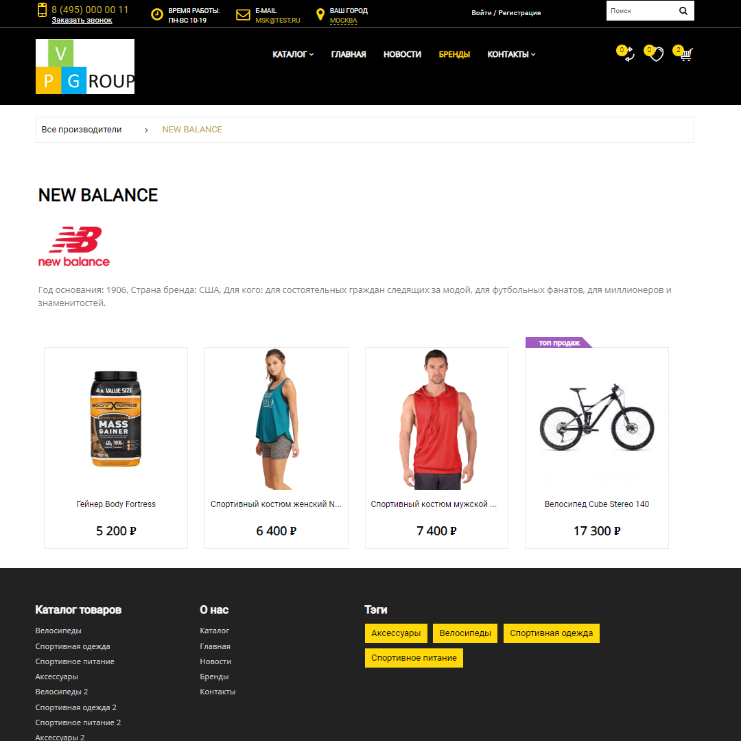 Pvgroup.Sport - в эту группу входят интернет-магазины, которые специализируются на продаже спортивной одежды, обуви, тренажеров, аксессуаров, а также для фитнес-центров и товаров для велоспорта.