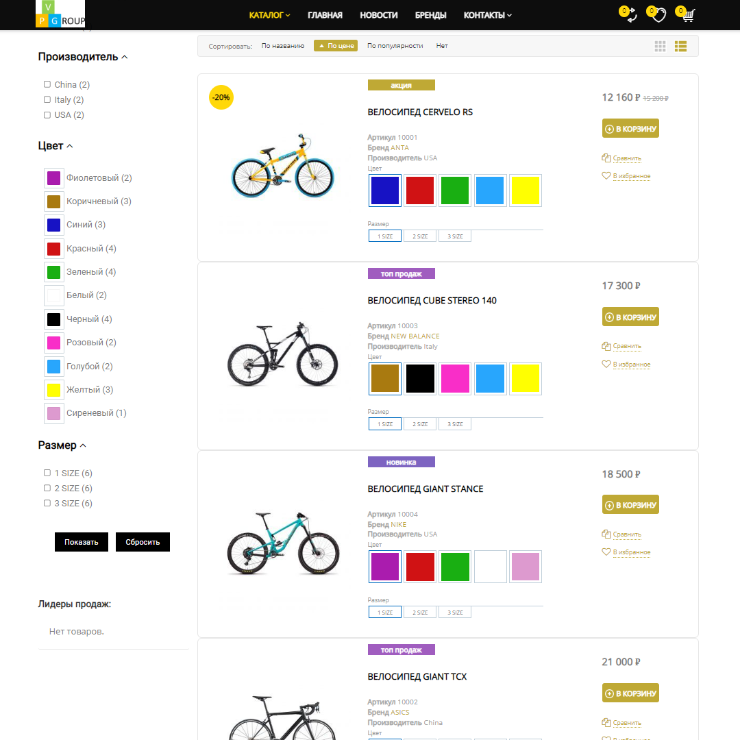 В интернет-магазинах от Pvgroup каталог товаров