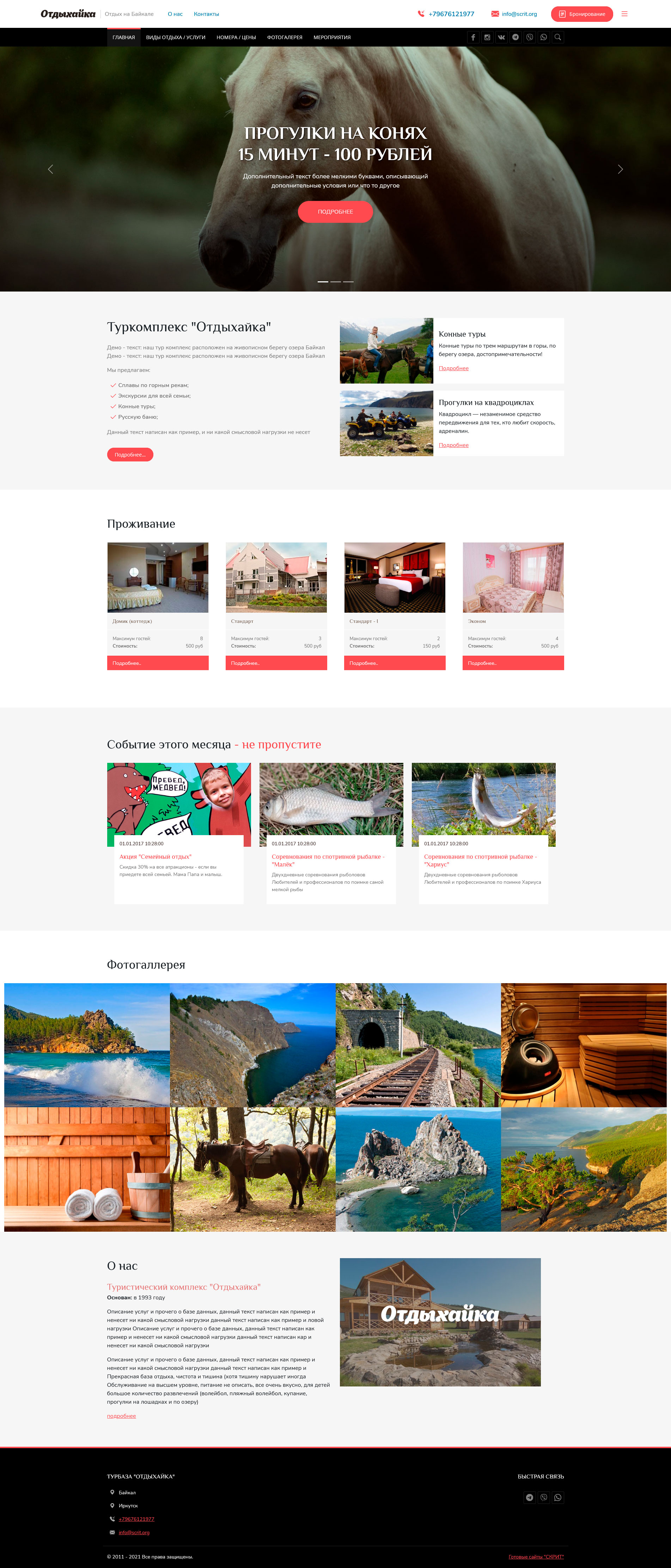 Современный адаптивный сайт для туристических баз/комплексов, загородных клубов, рыболовных баз и т.д..