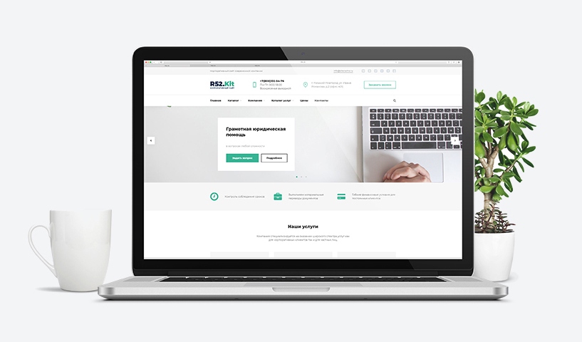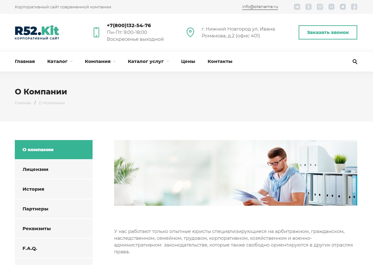 Решение отлично подходит для компаний, предоставляющих юридические, бухгалтерские, консалтинговые и другие услуги.Элементы главной страницы: