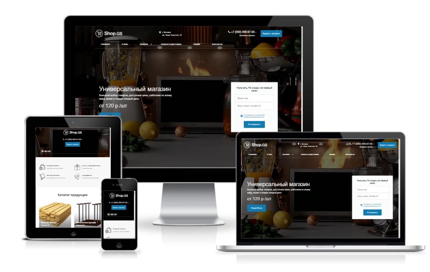 Адаптивный сайт. Мы создали отзывчивый адаптивный сайт, который отлично будет смотреться на всех устройствах: мониторы, ноутбуки, планшеты, смартфоны, и др. гаджеты