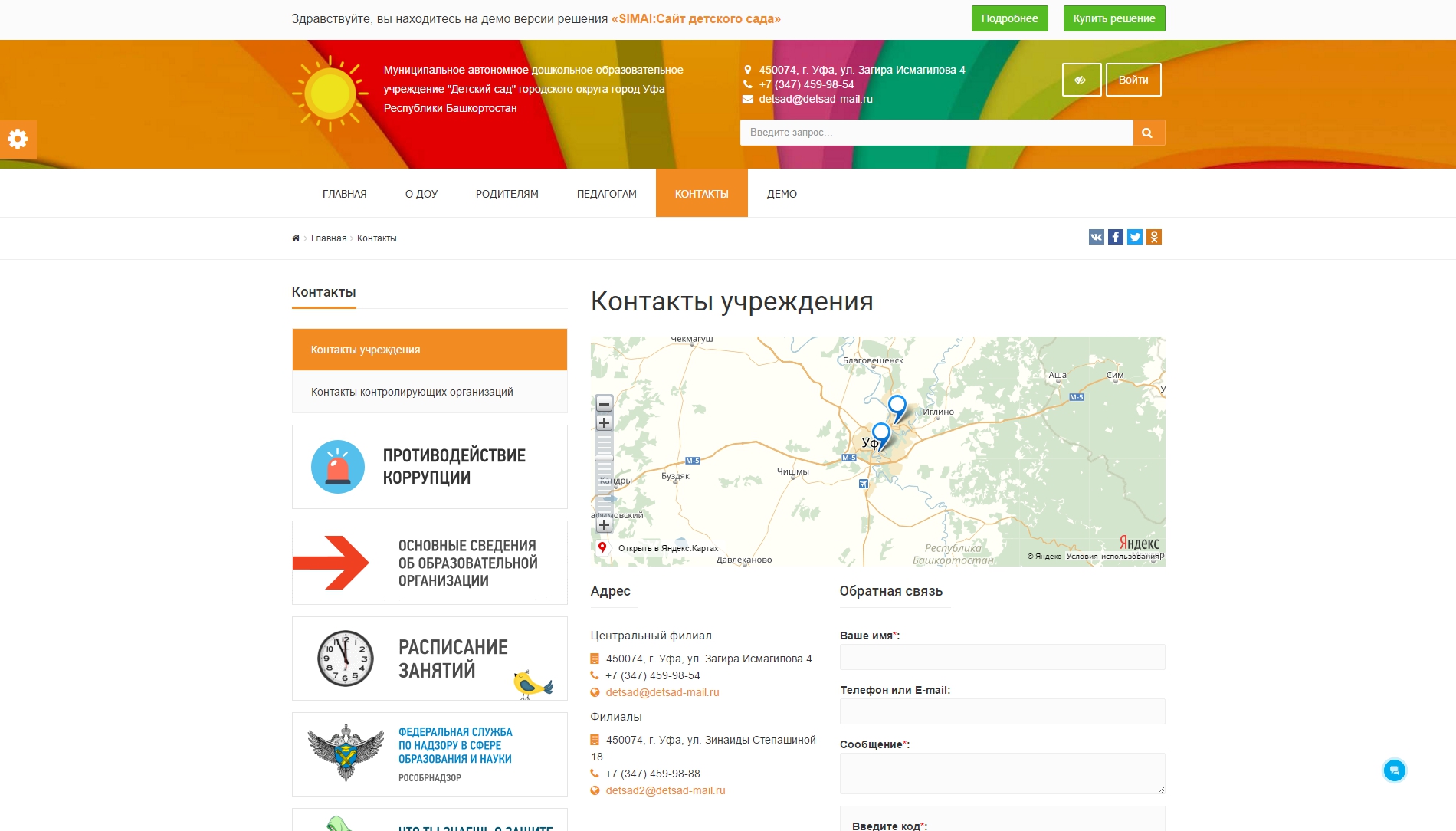- Демонстрационная версия сайта - http://detsad.sf2.simai.ru/