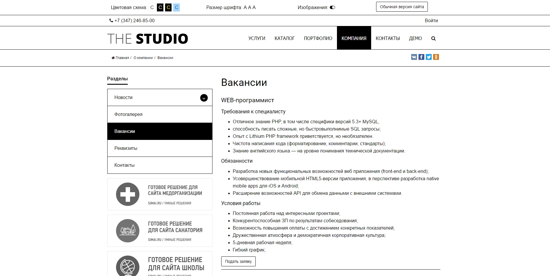 /шт SIMAI: Сайт компании – адаптивный с версией для слабовидящих: Стандарт