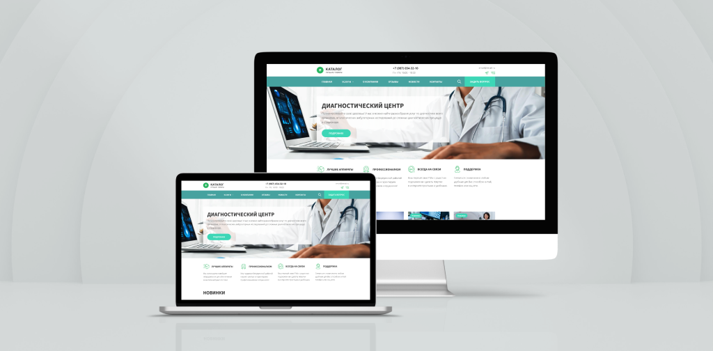 Универсальный корпоративный сайт с услугами диагностического центра. Современный сайт со всем нужным функционалом идеально подойдет для клиник, специализирующаяся на диагностических услугах: