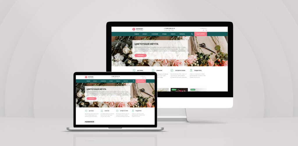 Универсальный корпоративный сайт с каталогом услуг. Современный сайт со всем нужным функционалом идеально подойдет для компании, работающей в сфере живых цветов: