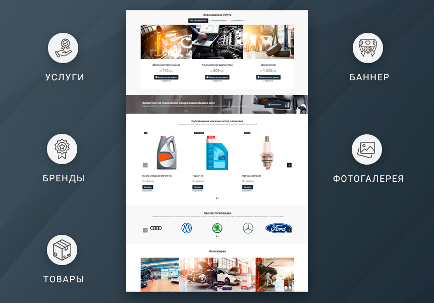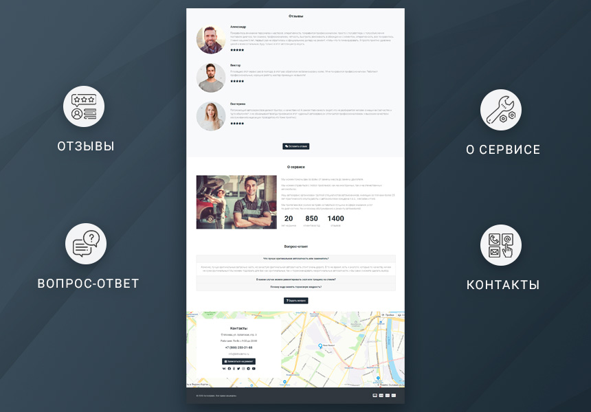 Готовое решение для быстрого запуска сайта для автосервиса или автомастерской.