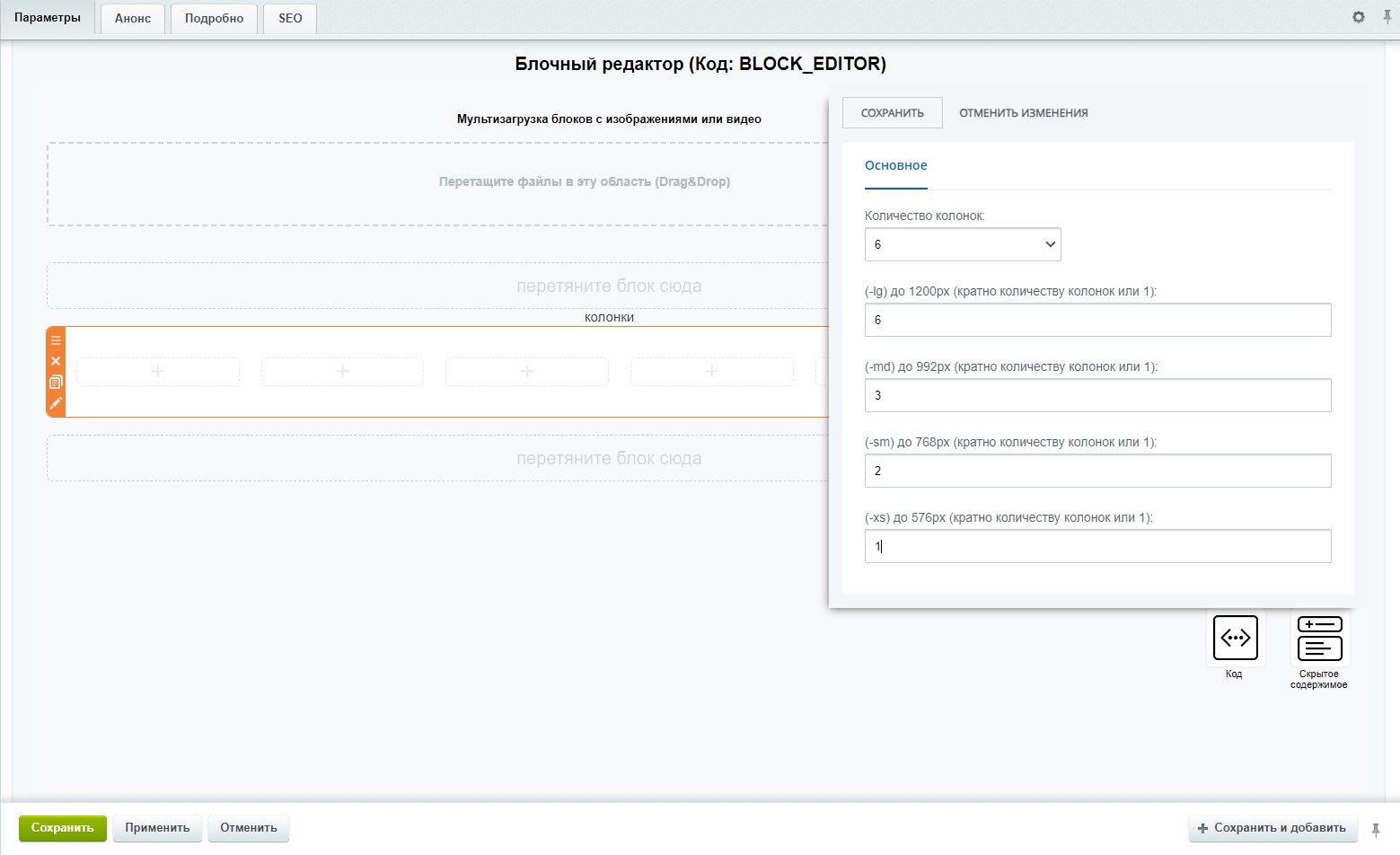 Компонент «Содержимое блочного редактора элемента инфоблока»: