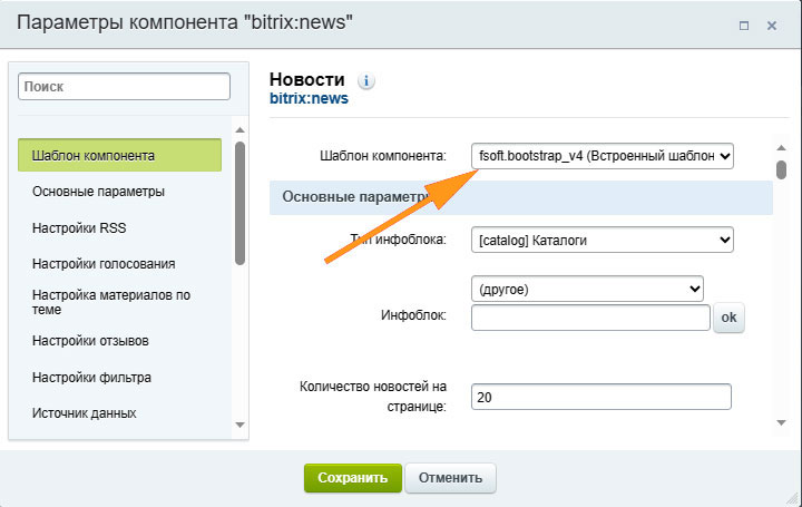 - Для комплексных компонентов Каталог и Новости встраивает предыдущие шаблоны в эти компоненты