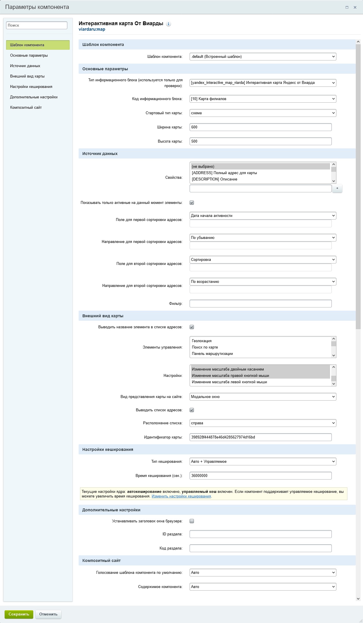 Компонент для вывода карты объектов с описаниями из элементов инфоблоков.