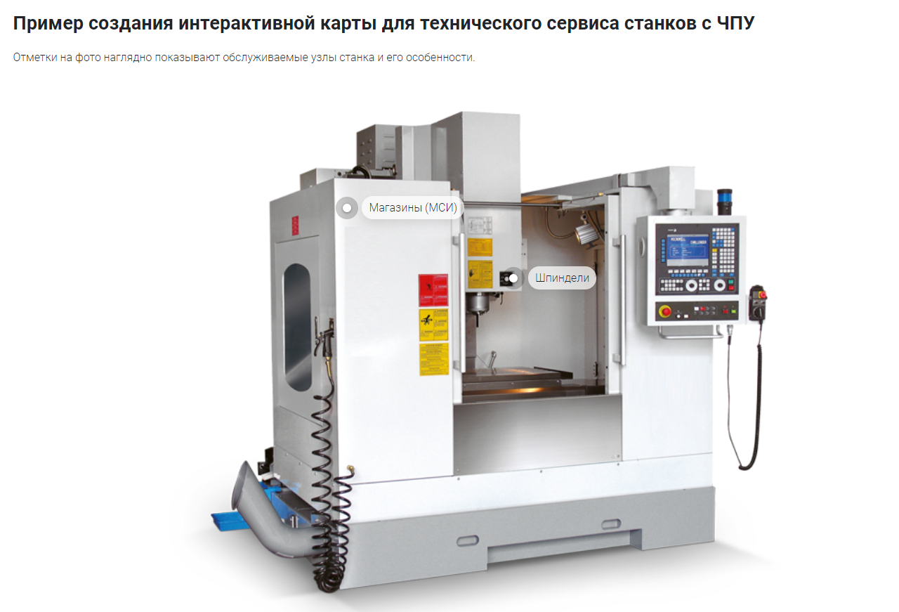- Возможность добавлять интерактивные метки на изображения и фото с помощью удобного графического редактора.