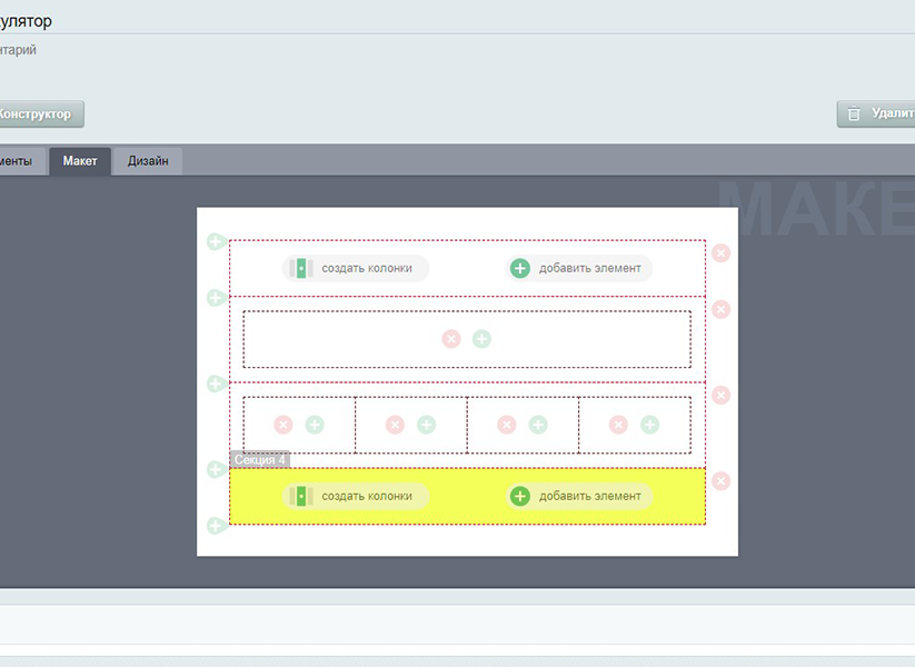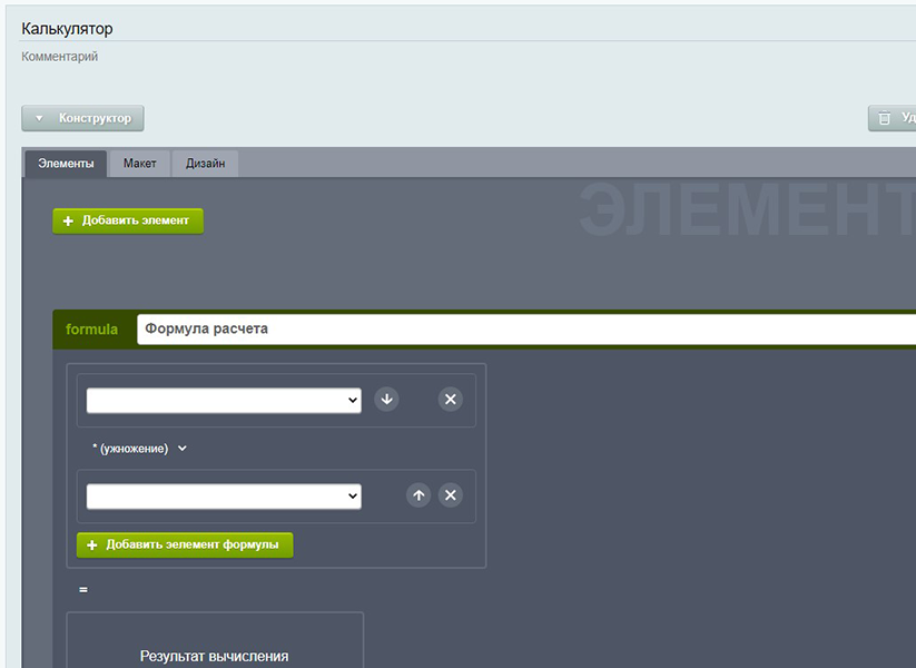 | Макет Макет калькулятора для размещения элементов формируется как таблица. При необходимости можно вставить произвольный HTML.
