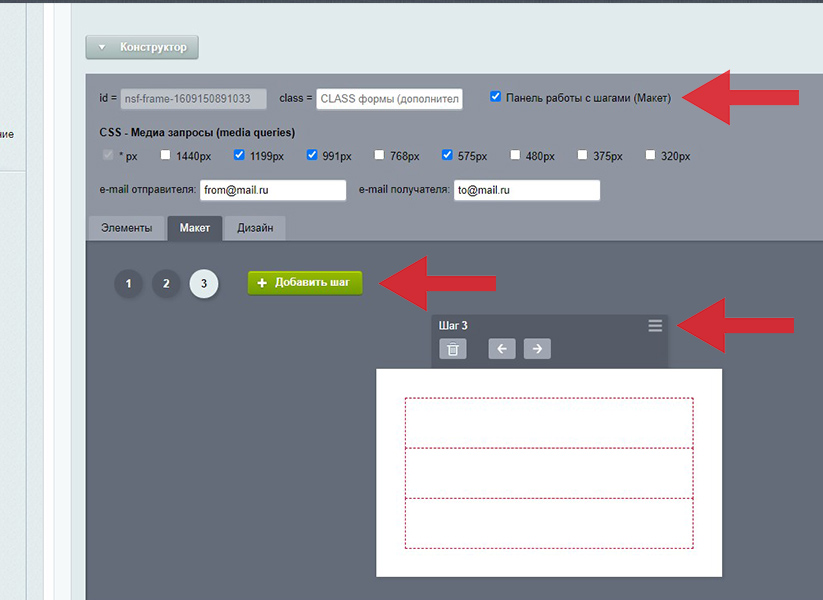 | Элементы В конструкторе доступны: "формулы расчета", "поля ввода", "списки", "кнопки", "переключатели", "флажки", "загрузка файлов", "заголовки", "текст", "изображения", вставка html кода (включая style и javascript).