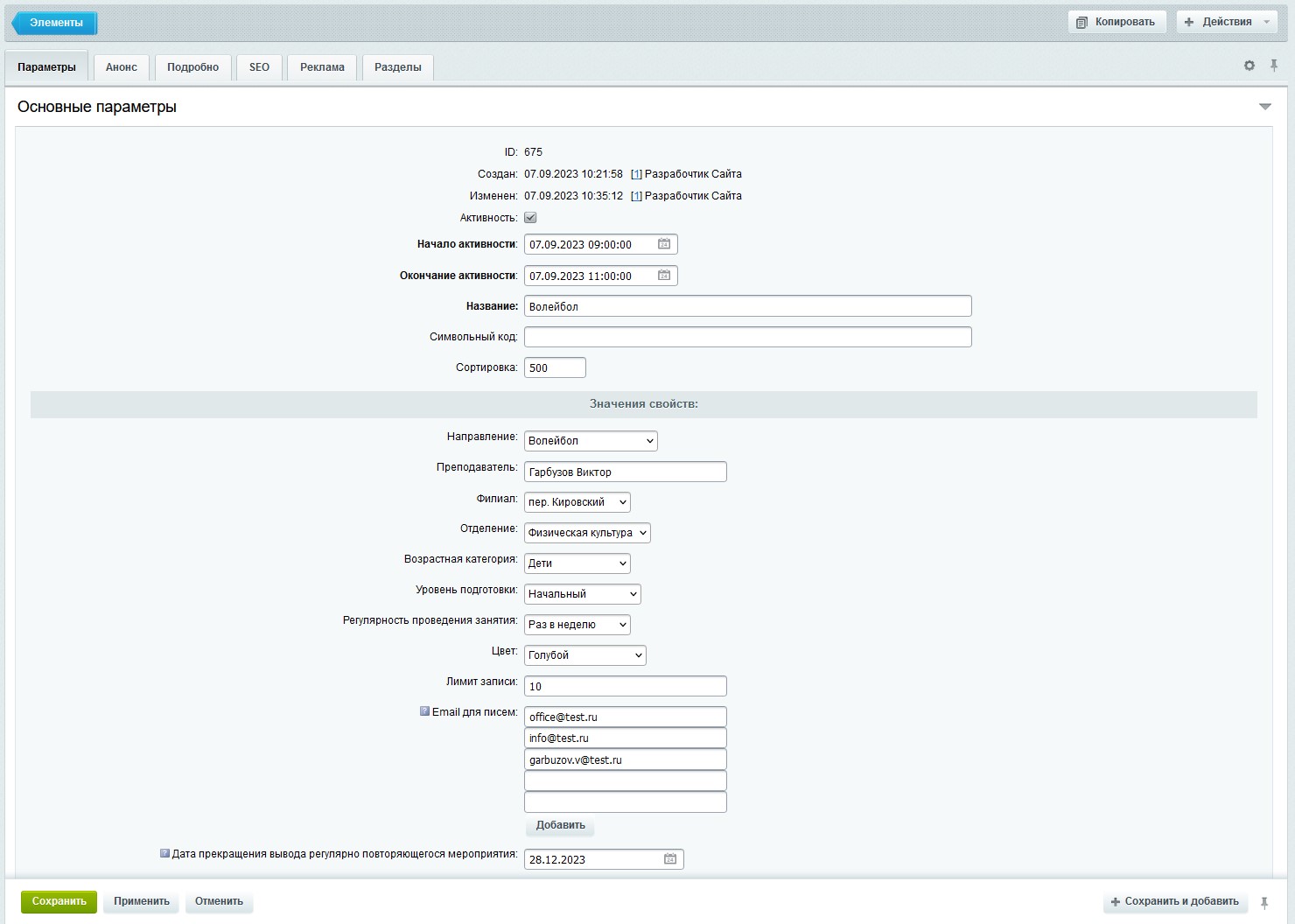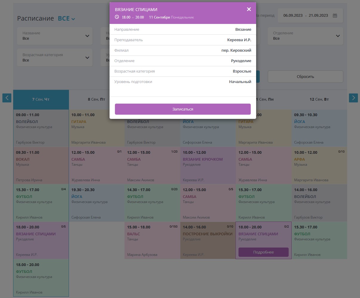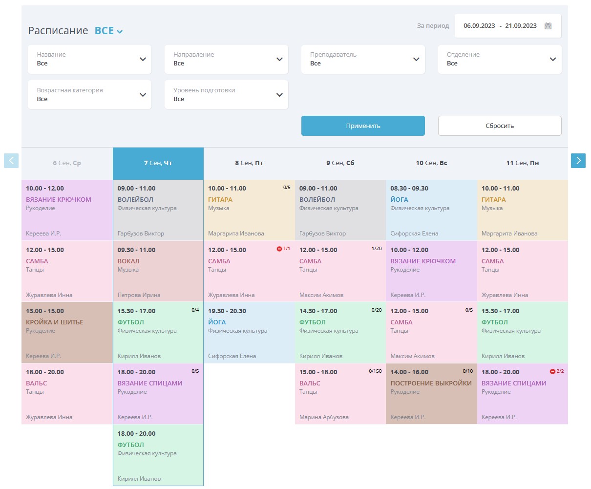 Расписание разработано с использования модуля "Инфоблок", чтобы заполнять его было привычно и просто.