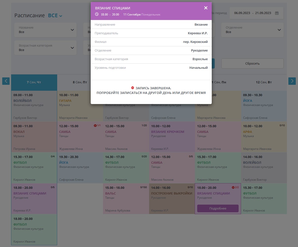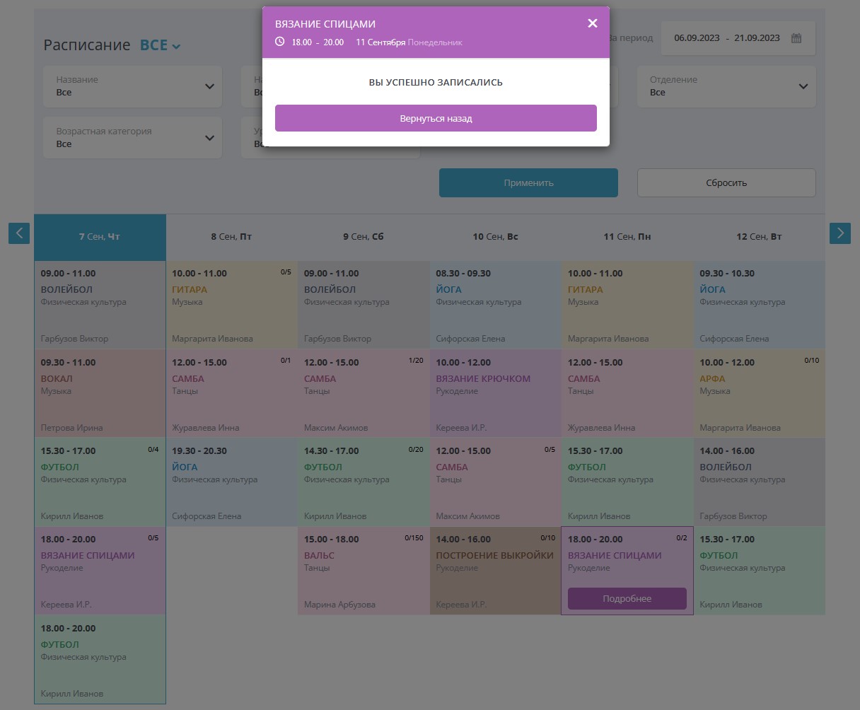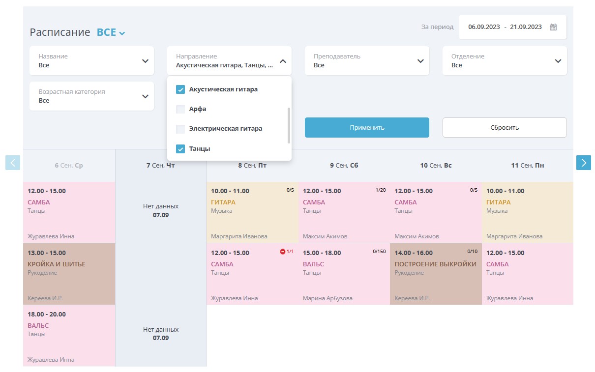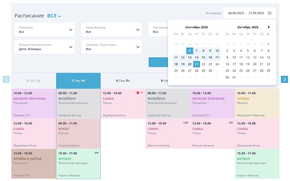 Расписание разработано с использования модуля "Инфоблок", чтобы заполнять его было привычно и просто.