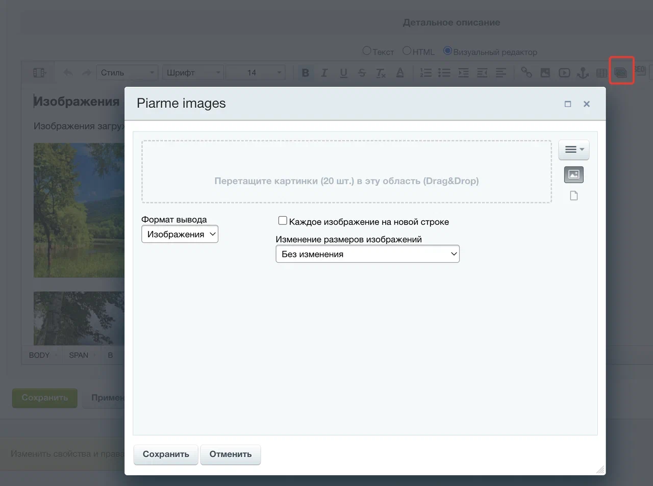 Добавление изображений
