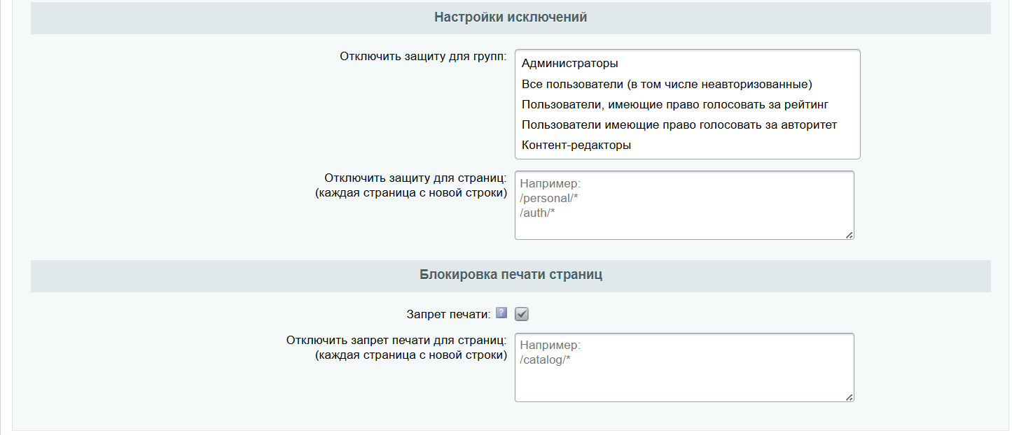 Решение позволяет скрывать контент при печати страницы. Вместо содержимого, будет пустой лист с сообщением о блокировке.