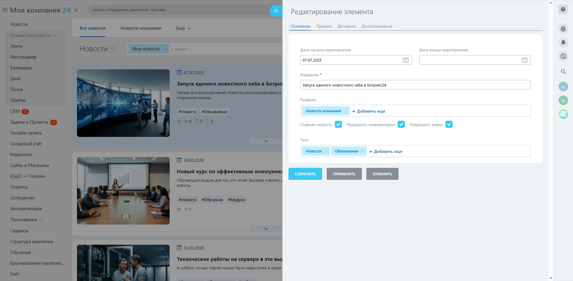 - Приоритезация охватов: Использование атрибута «Главная новость» для визуального выделения и принудительного закрепления важных анонсов в топе ленты.