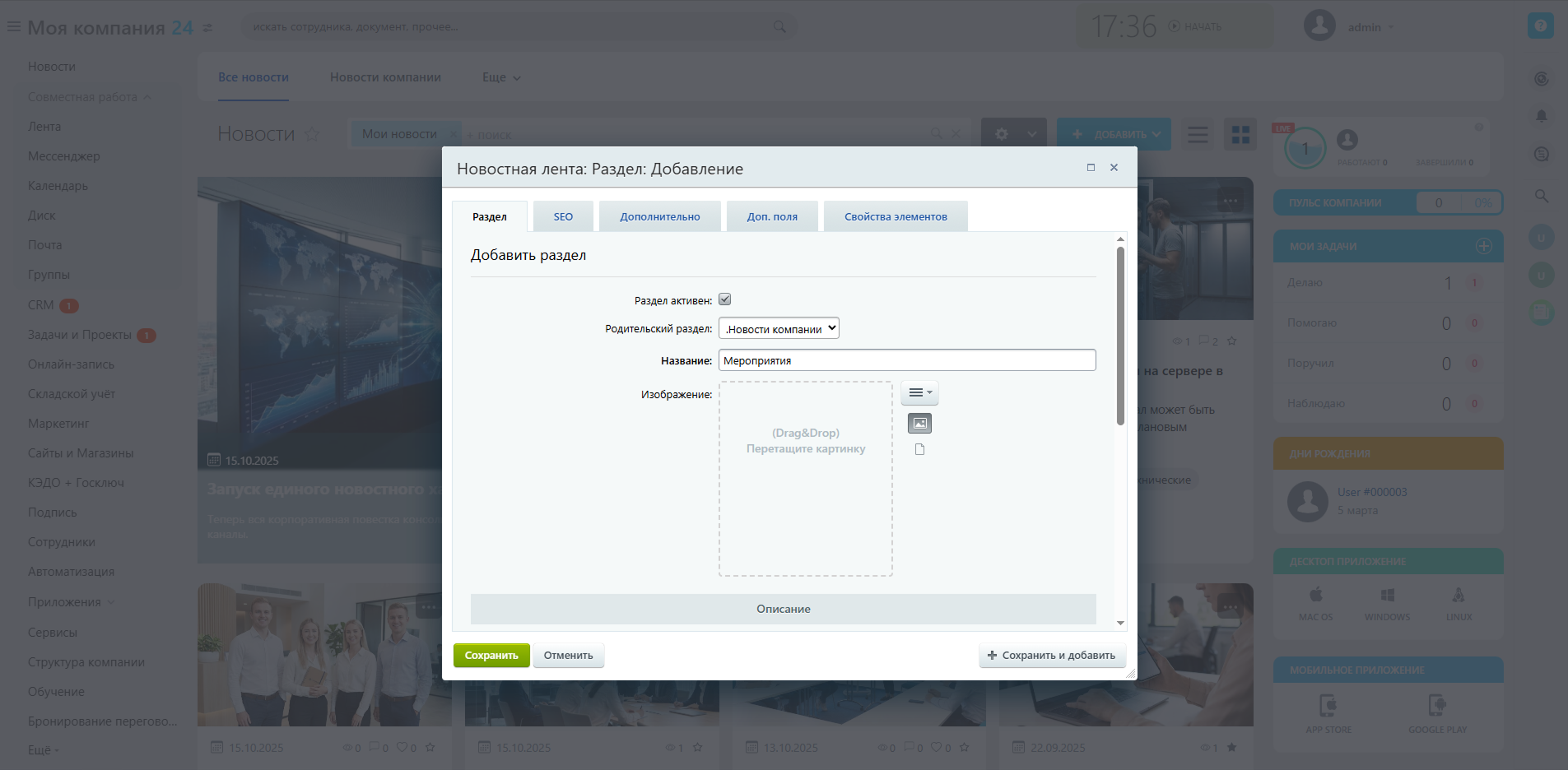 - Единое окно: Вся корпоративная повестка консолидируется на главной странице портала, исключая необходимость перехода в сторонние системы.