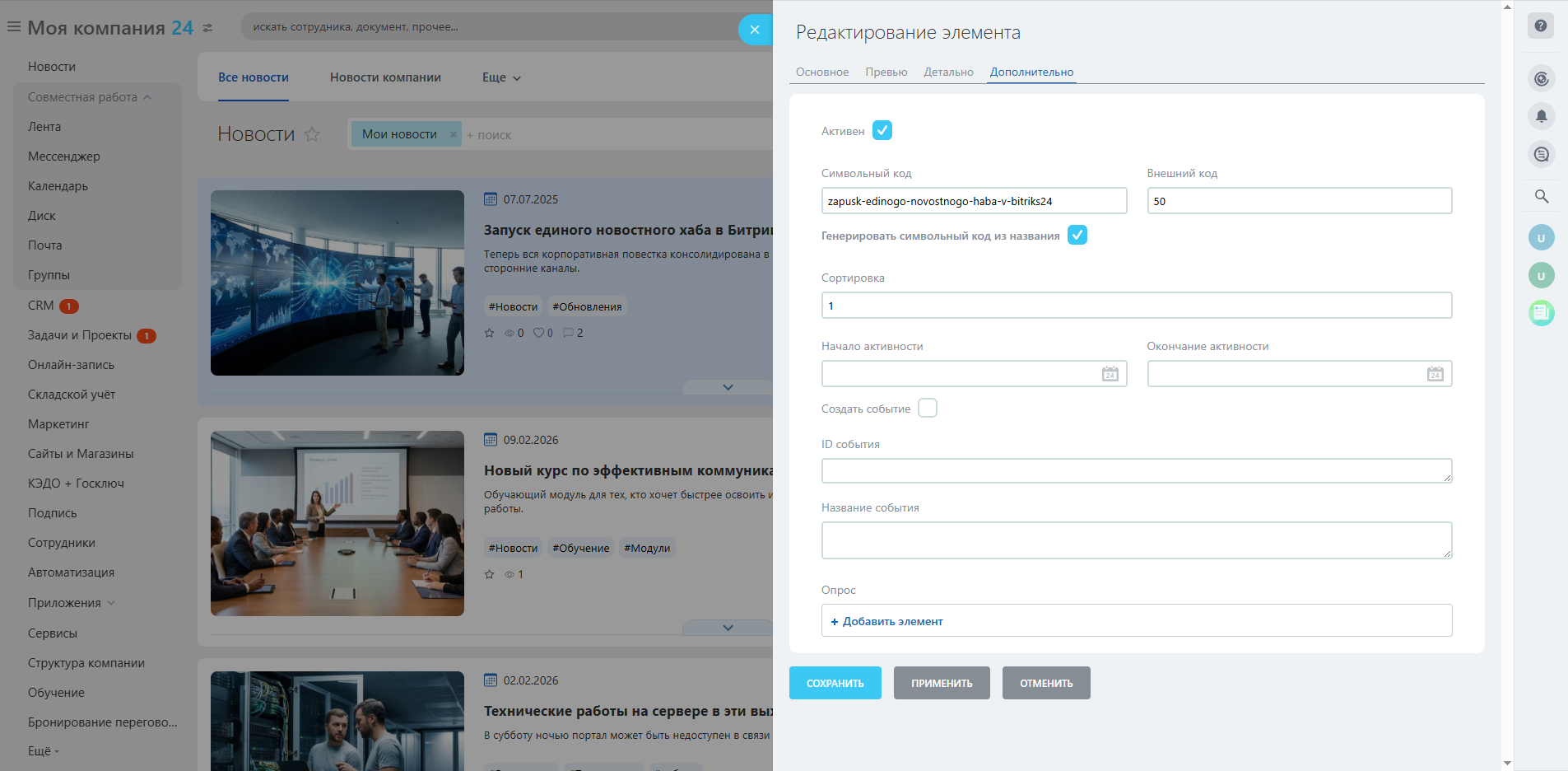 новости, информирование, лента новостей, медиа-хаб, контент, опросы, инфоблоки