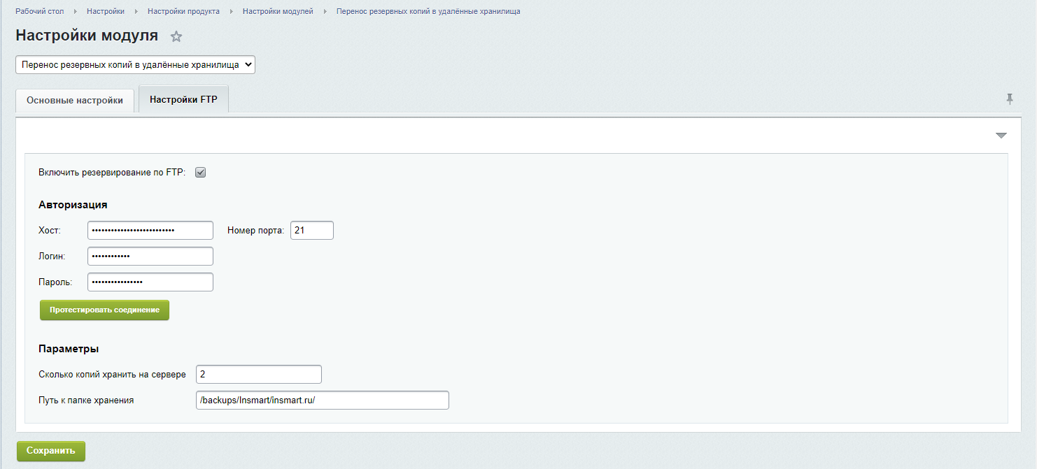 - позволяет установить ограничение максимального количества резервных копий, которые будут храниться на FTP сервере