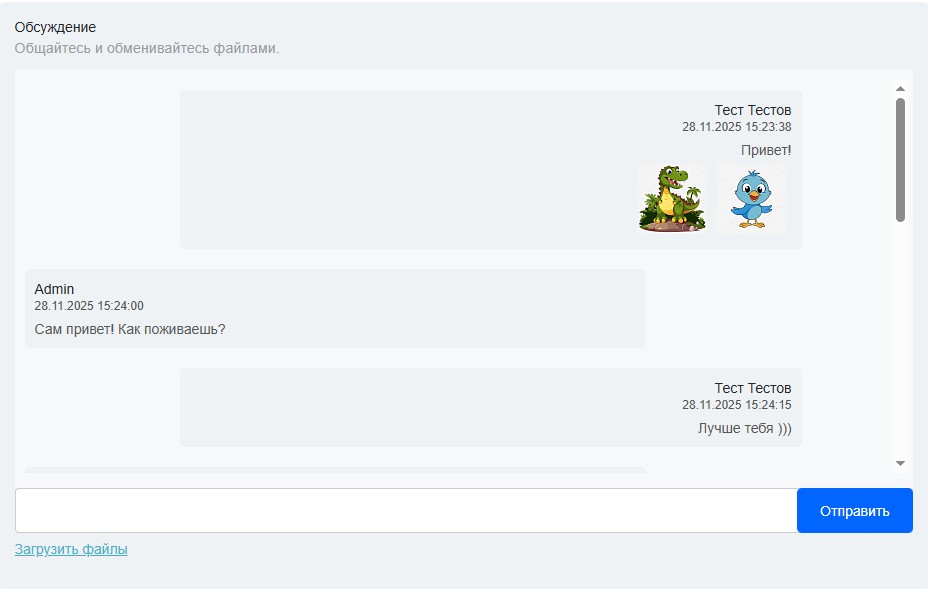 Варинат шаблона компонента, который визуально имитирует чат. Но в действительности чатом не является, т.е. чтобы увидеть новые сообщения в ленте, необходимо перезагрузить окно браузера.