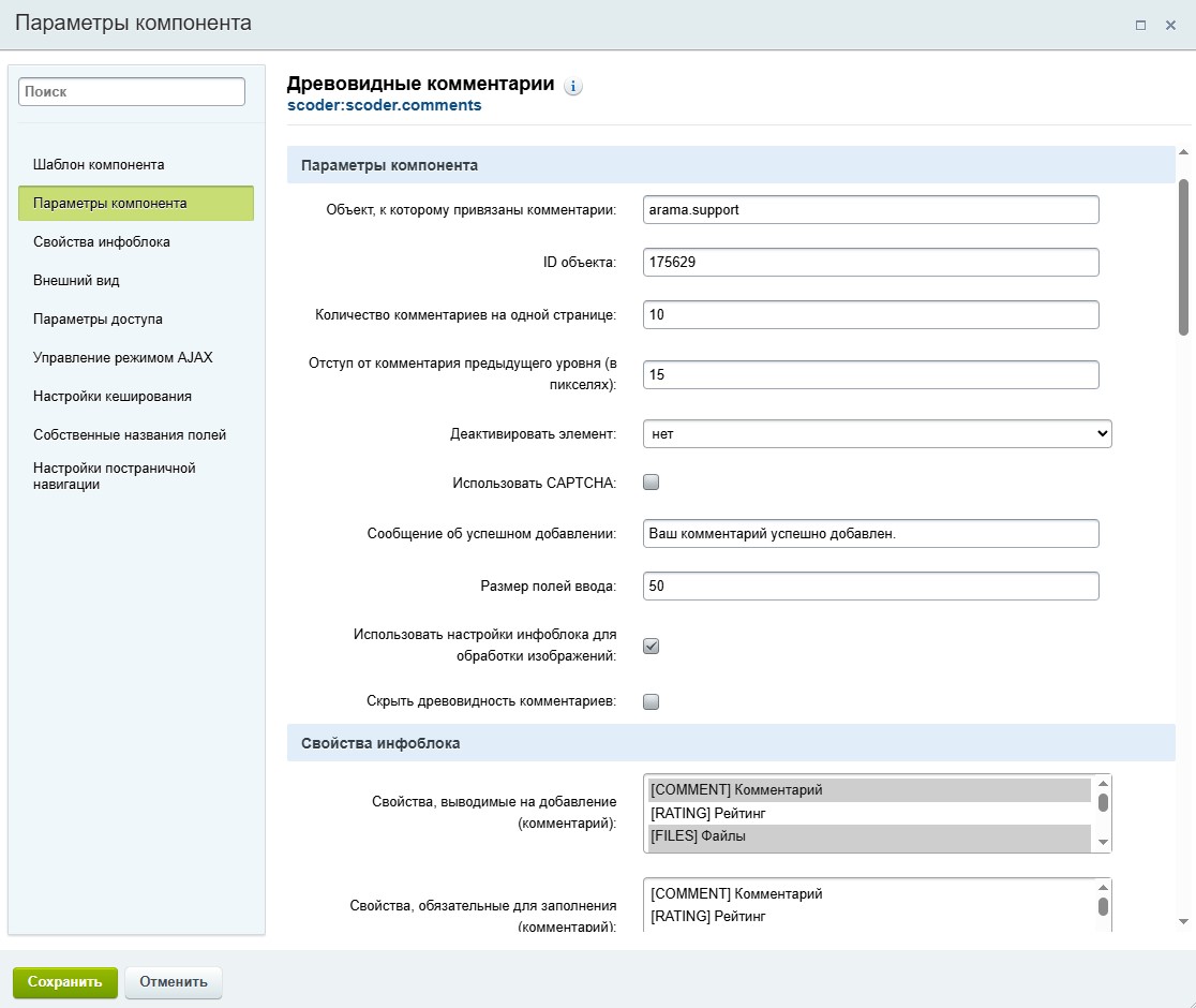 Кроме того, создавать комментарии можно к любым объектам, а не только к элементам инфоблоков или тому подобному, как это обычно бывает. Параметры организованы так, что можно крепиться к произвольным объектам: