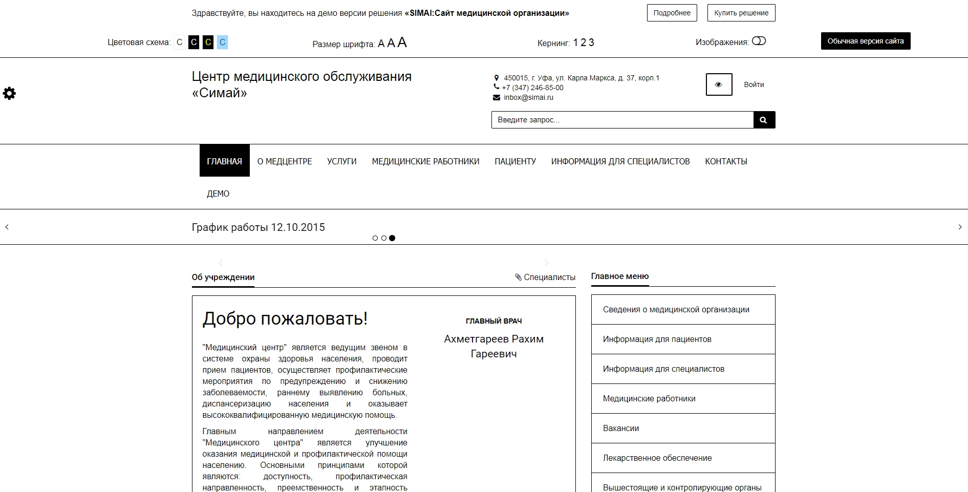 - удобство - отображение контента в версии сайта для слабовидящих (размер шрифта, цветовая схема, возможность включать/выключать изображения) может быть настроено самим пользователем,