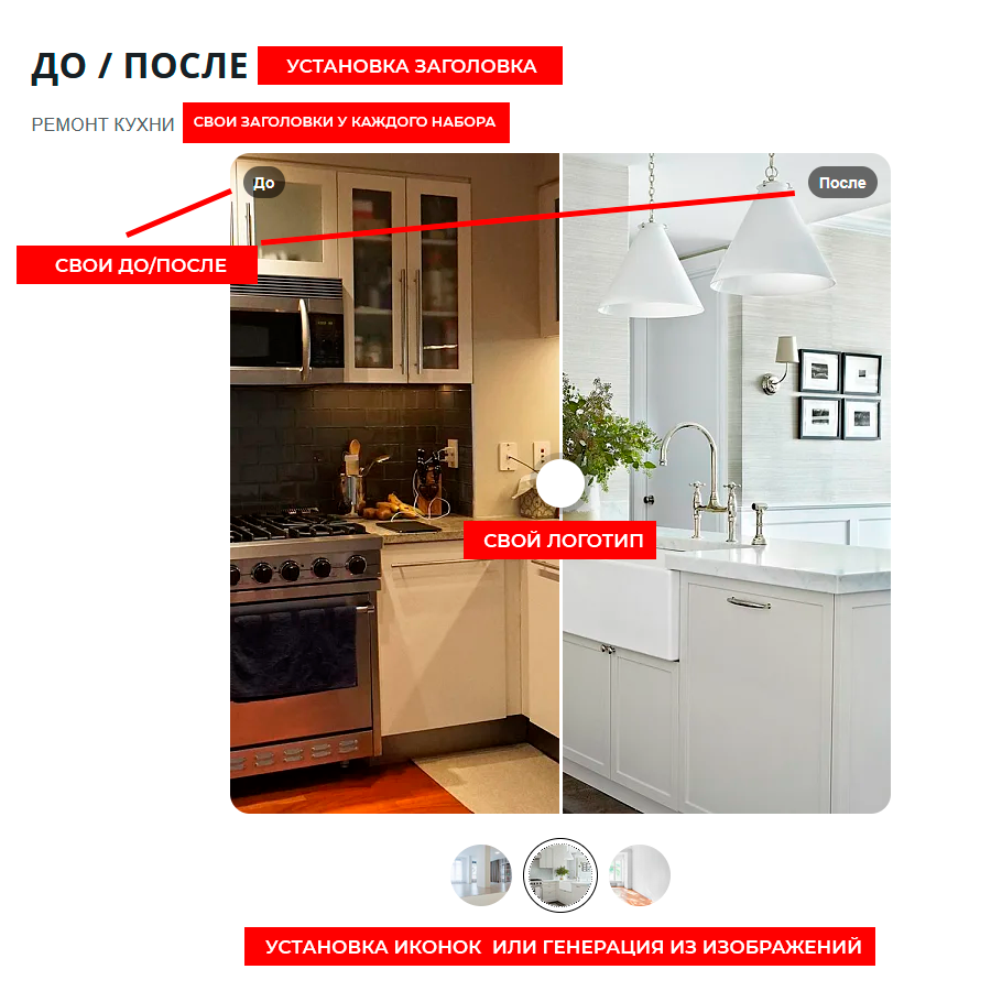 Основные возможности- Интерактивное сравнение “До/После” с управлением ползунком