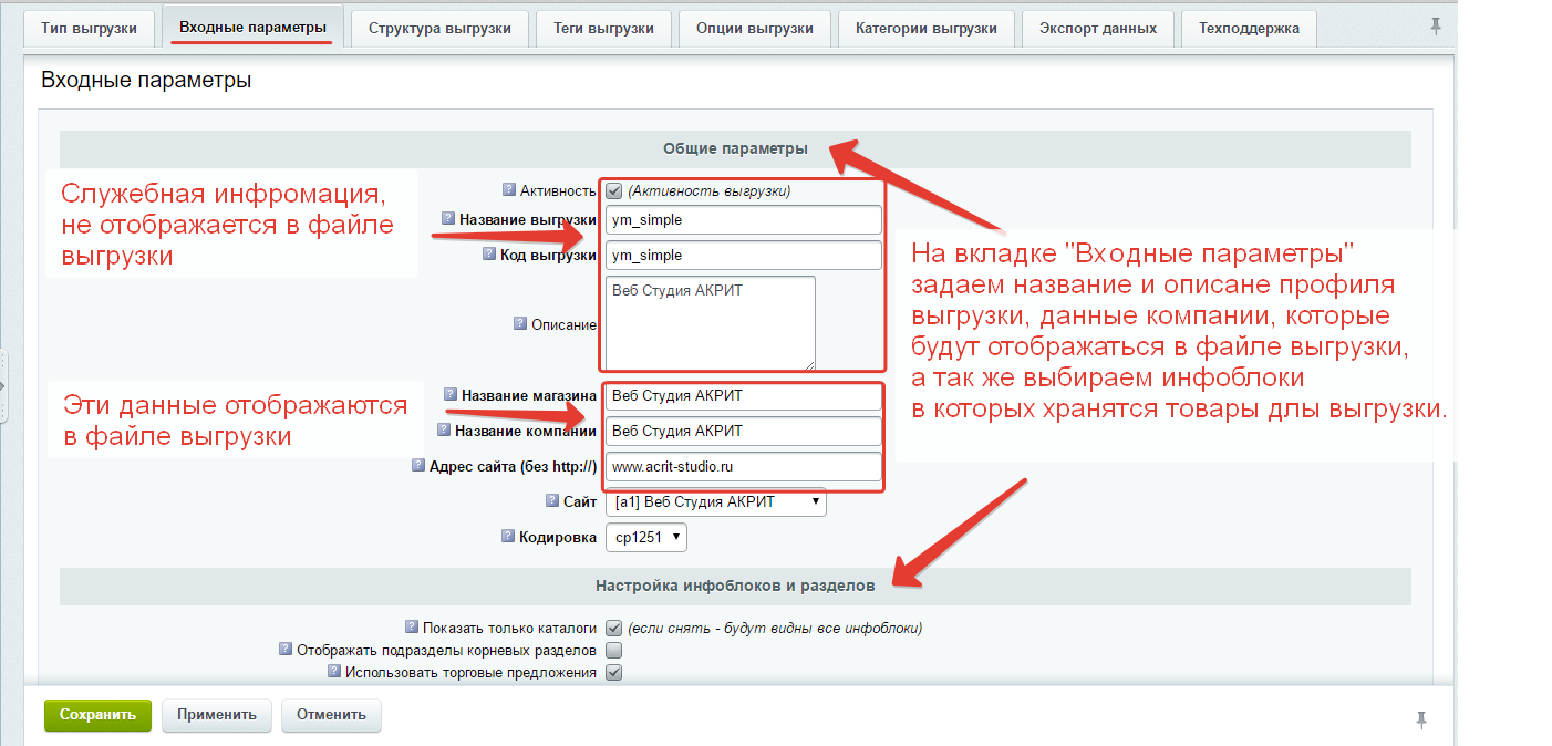 | Использование названий инфоблоков в качестве основной категории выгрузки товаров | | | | |