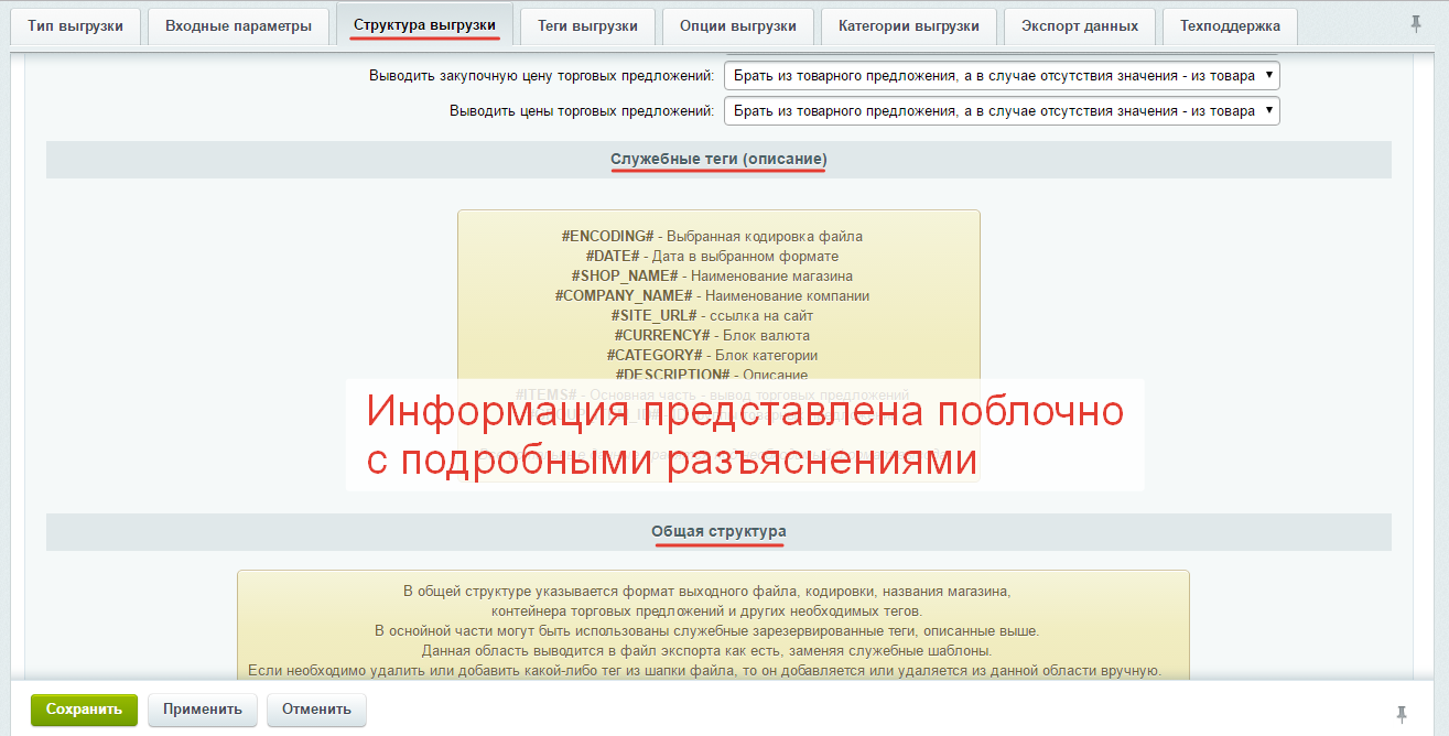 | Режим выгрузки товаров вместе с торговыми предложениями | | | | |