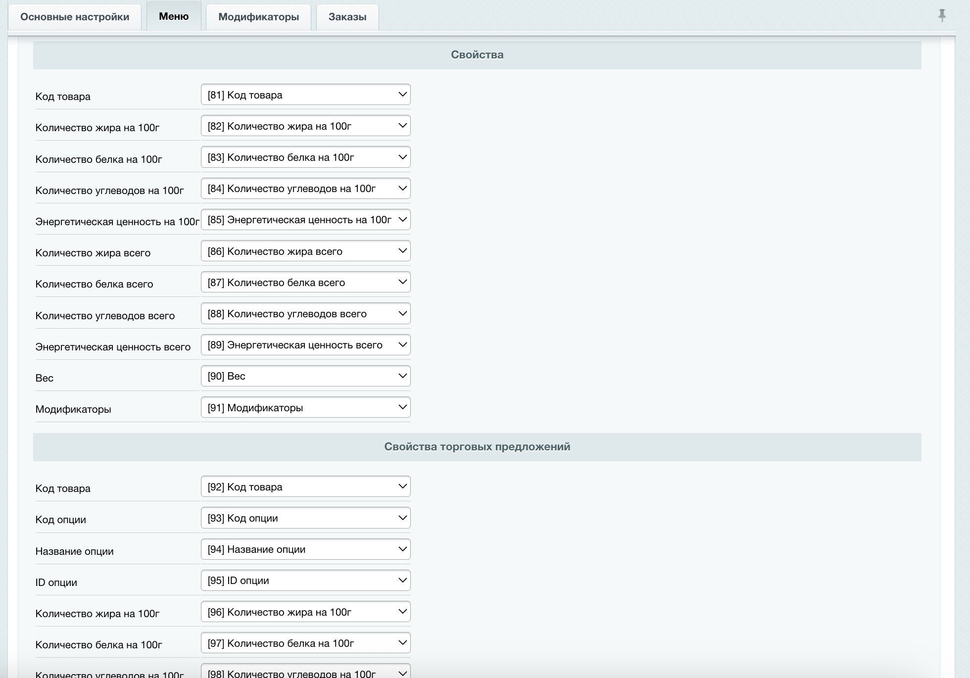 - возможность синхронизации по коду(артикулу) товара(блюда)