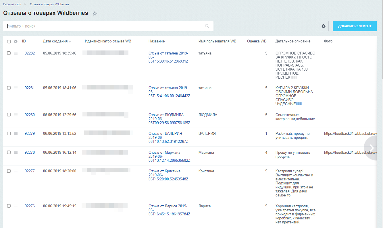 В демо-режиме работы модуля доступно не более 50 отзывов с сайта Wildberrise.