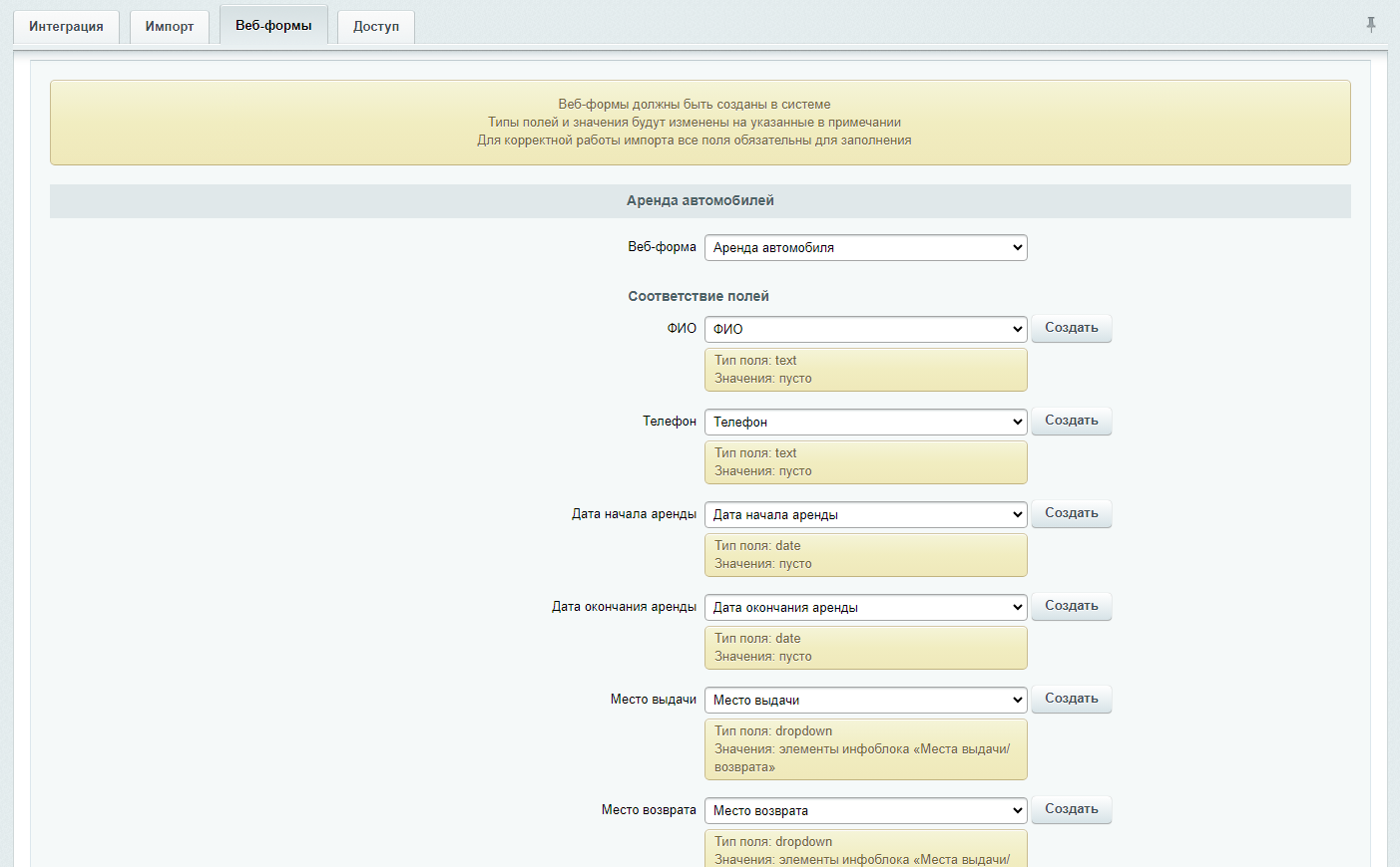 После успешного импорта дополнительные услуги “подтянутся” на сайт из CRM WS Автопрокат.