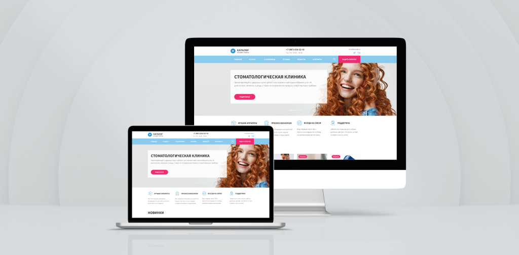Универсальный корпоративный сайт с услугами стоматологической клиники. Современный сайт со всем нужным функционалом идеально подойдет для клиник, специализирующаяся на услугах зубных врачей: