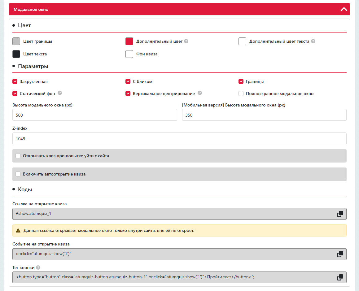 | Схож со всеми популярными квиз-сервисами и благодаря настройкам модуля легко интегрируется в сайт. |