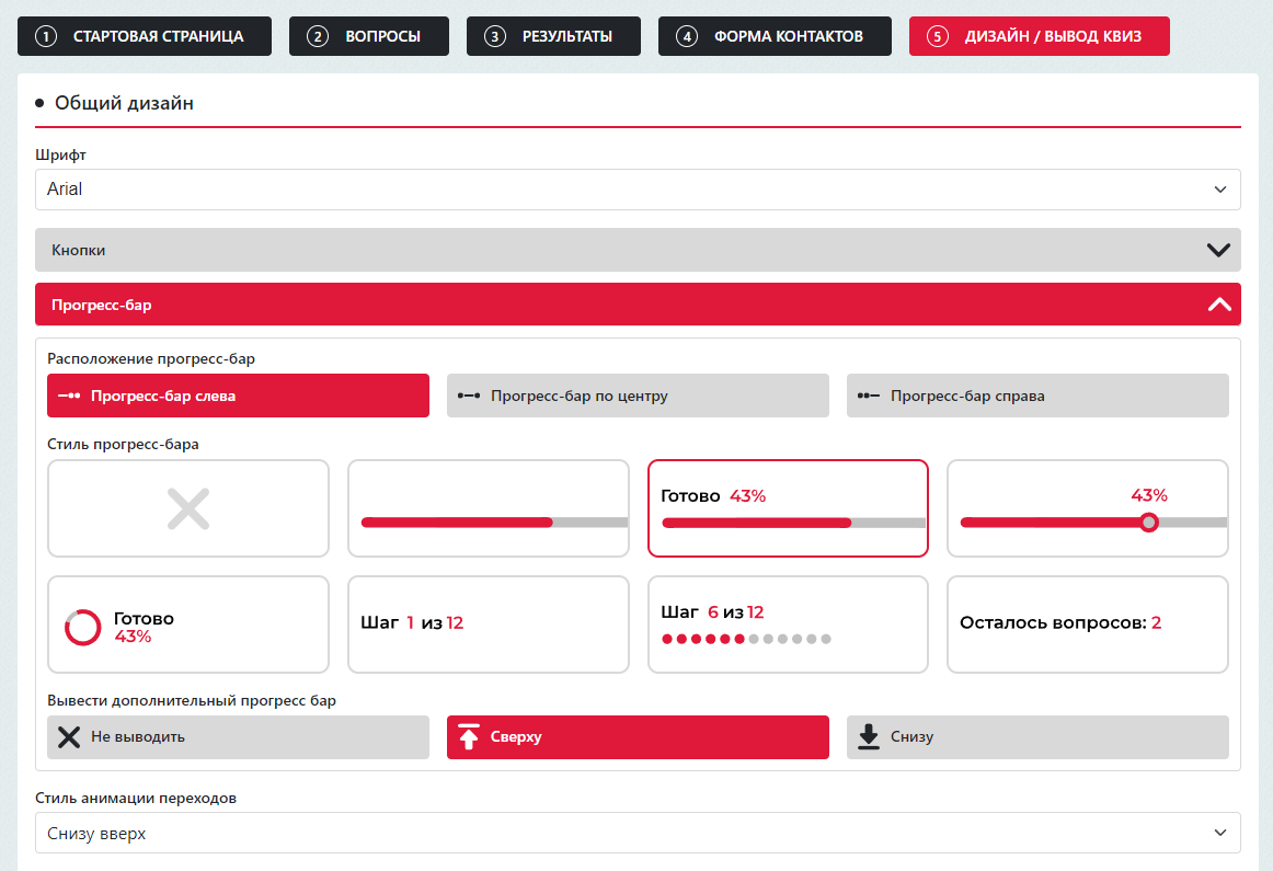 | Данный шаблон является копией Стандартного шаблона, для более гармоничного вывода квиза в данном шаблоне добавлены отступы и слегка измененные стили. |