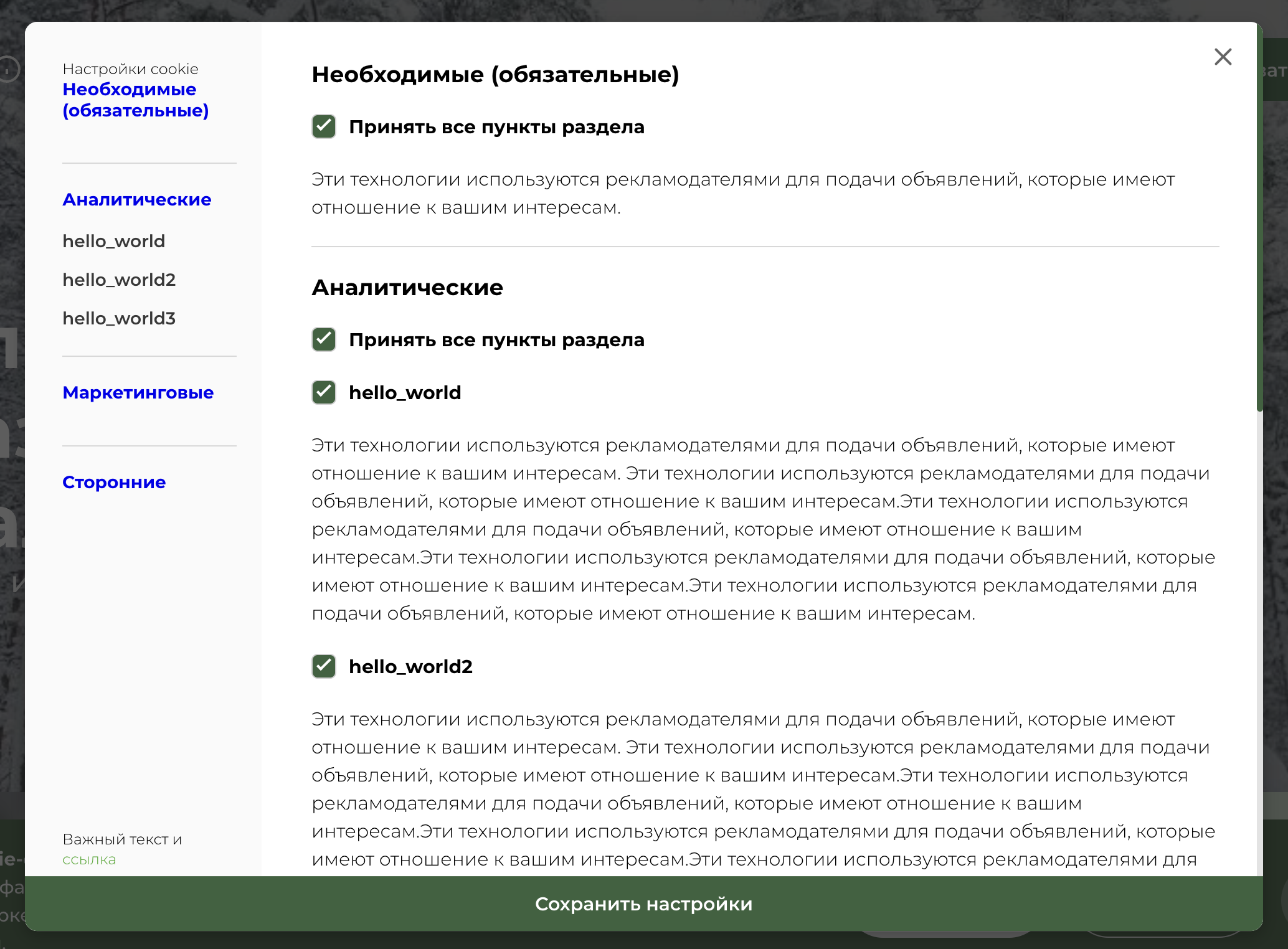 Кнопки: «Принять всё», «Сохранить выбор», «Отклонить»