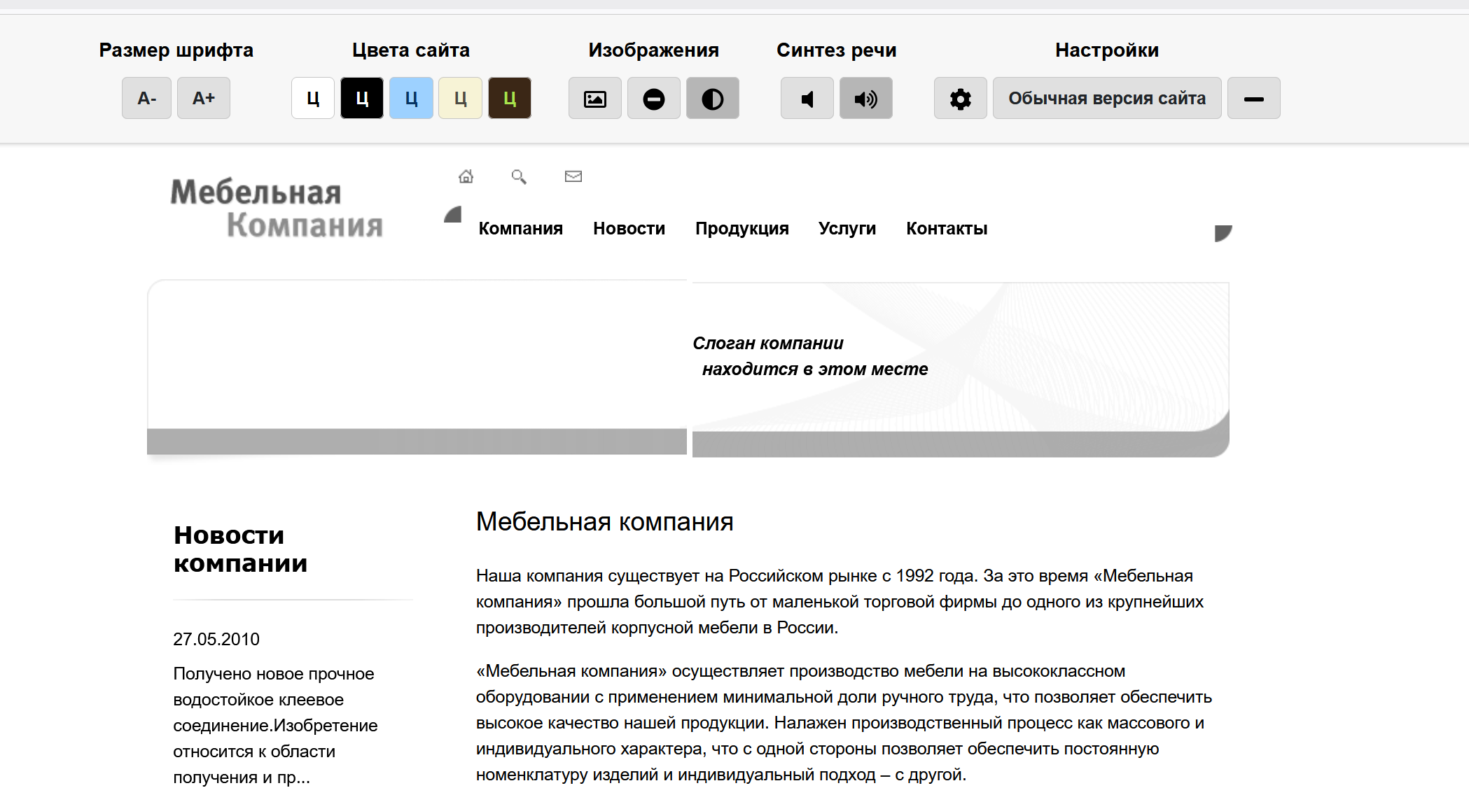 Версия для слабовидящих создается "на лету" без необходимости создания отдельного шаблона сайта.