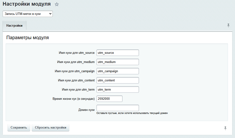 - Сохранение UTM-меток в куки с заданным сроком жизни