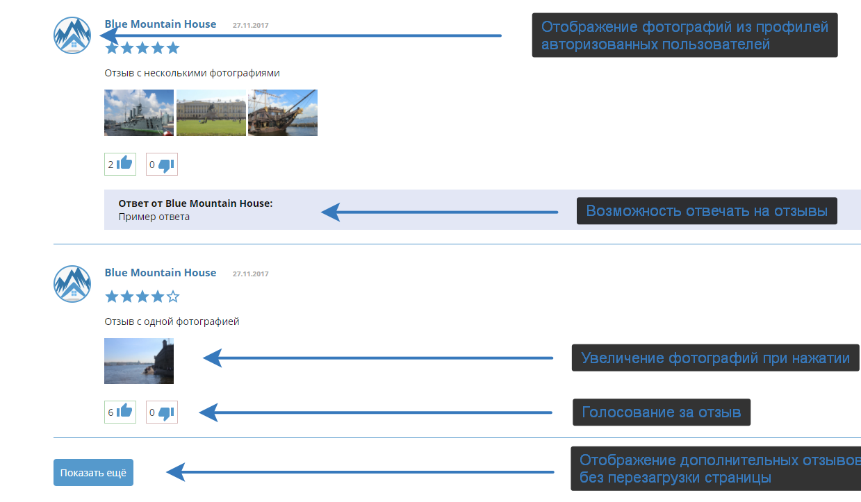 - Возможность прикреплять к отзыву неограниченное количество фотографий