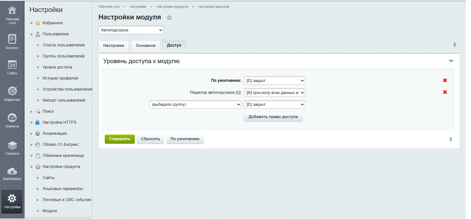 Создание автоподсказок доступно только пользователю, состоящему в группе «Редактор автоподсказок» или администратору портала. В зависимости от лицензии Вашего продукта открытие окна создания/редактирования автоподсказок осуществляется следующими способами: