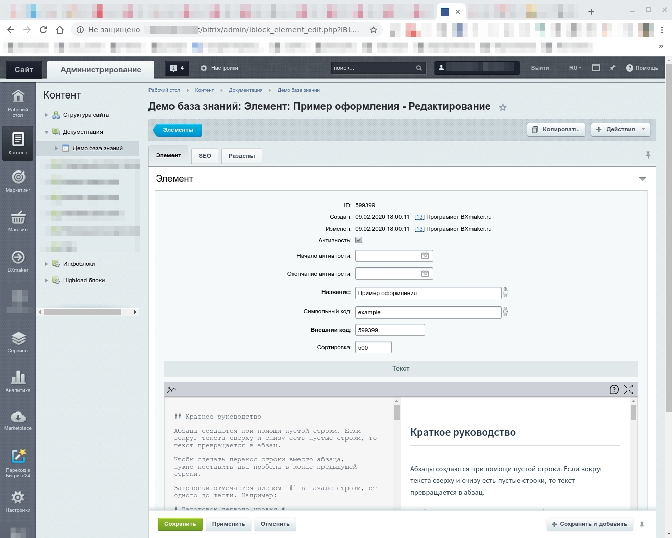 Модуль позволяет организовать на сайте раздел с документацией, базой знаний и тп.