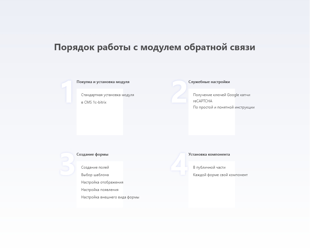Появление формы обратной связи представлено в трех вариантах: Форма появляется только после того, как пользователь провел на сайте определенное время (5 секунд, 10, 30 секунд и т.д. - таймер настраивается), при этом страницы появления могут настраиваться индивидуально; Форма обратной связи появляется перед тем, как пользователь попытается выйти со страницы (закрыть страницу, сайт, сменить активное окно); На странице размещается кнопка, нажатие на которую сопровождается появлением формы обратной связи.