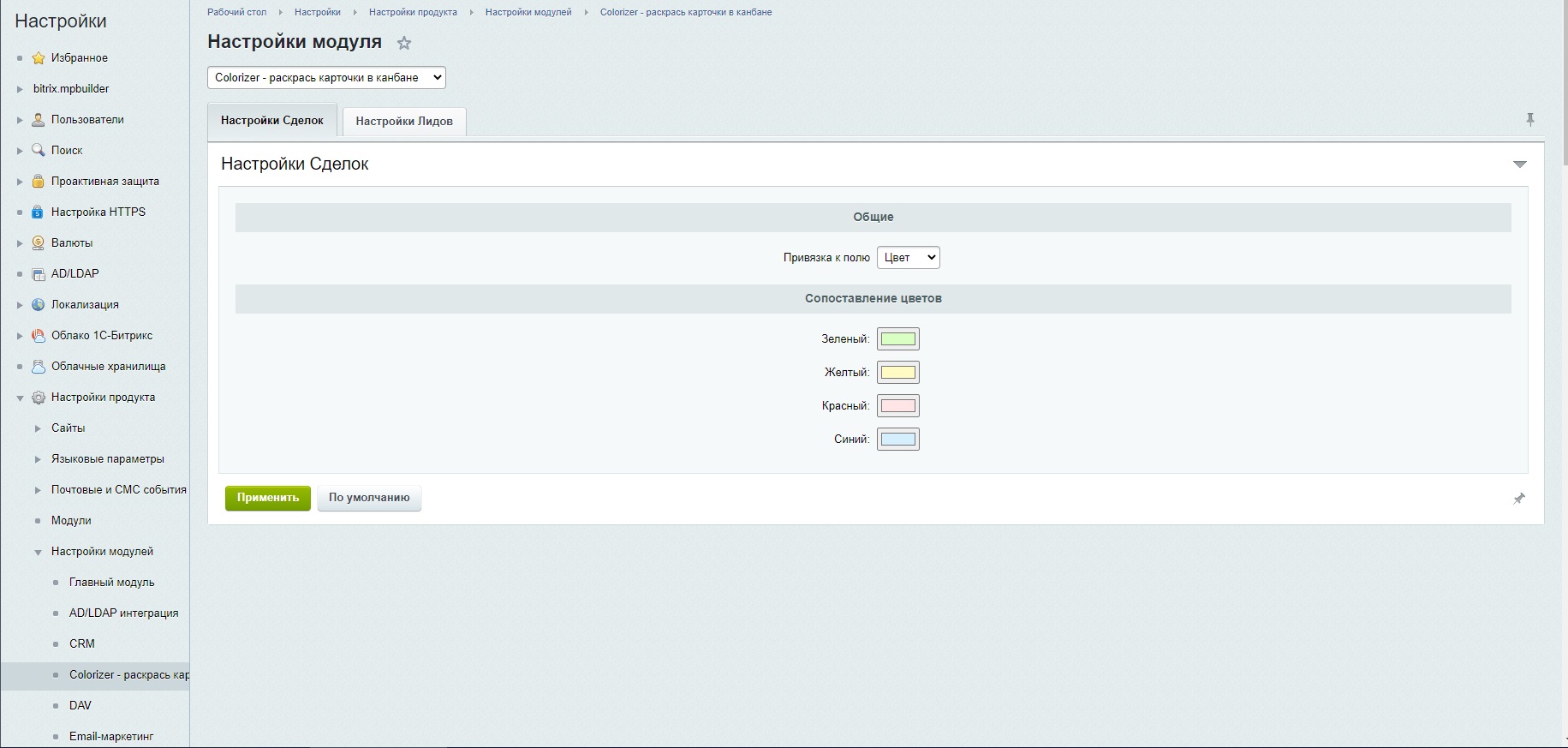 Очень многим клиентам в Битрикс24 не хватает цветового тегирования карточек в канбане и списке, когда по определенному свойству их можно было бы раскрасить в нужный цвет. Приложение позволяет для значений любого пользовательского списочного поля в лиде, сделке или смарт-процессе назначить цвет. Вы просто создаете списочное поле и в настройках приложения для каждого его значения выбираете цвет на палитре. При выборе этого значения в лиде, сделке или смарт-процессе карточка в канбане или строка в списке будет подсвечиваться соответствующим цветом.